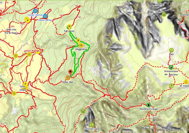 Hofer Alpl ➔ Schlernhaus: Vom Hofer Alpl (1.364 m) geht es stetig bergauf. Auf dieser Etappe legst Du am meisten Höhenmeter zurück. Du querst die Bergflanken und steigst über den "Prügelweg" oder alternative Steige hinauf zur weiten Hochfläche des Schlerns. Das Schlernhaus (2.457 m), auch "Schloss in den Bergen" genannt, bietet ein phänomenales Panorama.