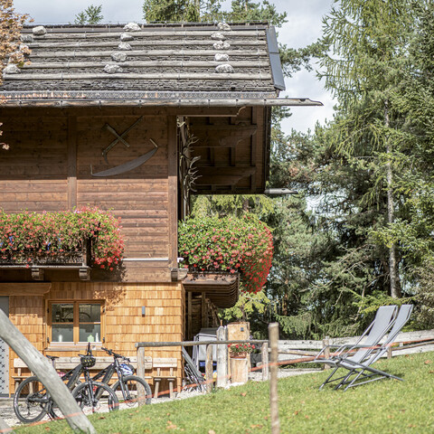 Bis zum Wanderparkplatz Hofer Alpl mit dem eigenen Auto. Weiter dann zu Fuß (Weg Nr. 3), mit dem Mountainbike (Weg Nr. 8) oder auf deinen Wunsch hin holen wir dich – bzw. nur dein Gepäck – mit unserem Bergtaxi ab.