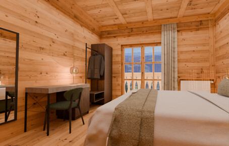 Bergloft (Familienzimmer / Mehrbettzimmer): Diese bieten Platz für 2 bis 4 Personen (Doppelbett und Schlafcouch).